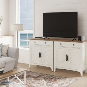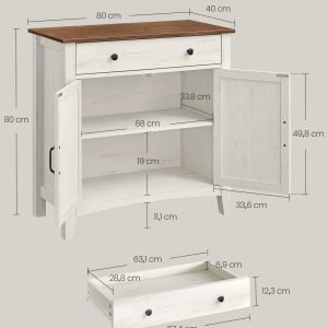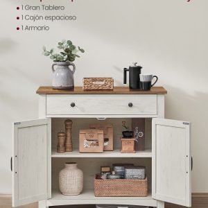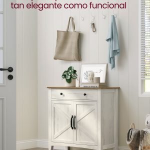 Este aparador versátil es una encantadora adición a cualquier hogar, combinando una estética rural con funcionalidad moderna. Con su diseño elegante en blanco rústico y marrón miel, y sus puertas estilo granero, este mueble es ideal para tu sala de estar como centro de entretenimiento, un armario de almacenamiento en tu cocina o comedor, o incluso como consola en tu recibidor. Ofrece un almacenamiento abundante y organizado con un cajón espacioso, un amplio armario inferior, y un tablero generoso para decoración.