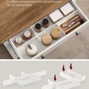 Diseño Personalizable: Separador de cajones ajustable y estante del armario con 5 alturas ajustables.