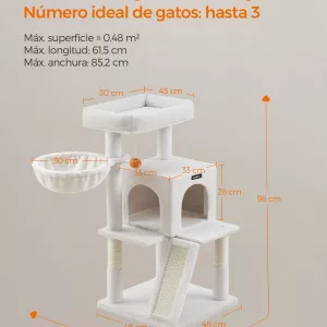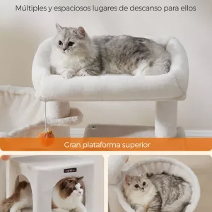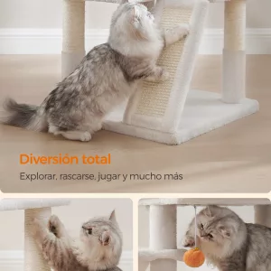 Material Robusto, Zona de Juegos Segura: Hecho con tablero de aglomerado resistente, felpa suave y postes envueltos en sisal, este árbol para gatos es una zona de juego segura, ideal para que jueguen hasta 3 gatos (máx. de 7 kg cada uno).