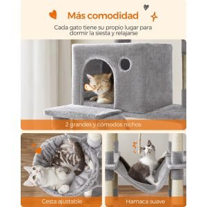 Altura Impresionante: Con una altura de 206 cm, este árbol para gatos es ideal para gatos a los que les gusta trepar y disfrutar de lugares altos. La distancia corta entre niveles facilita la subida y bajada.