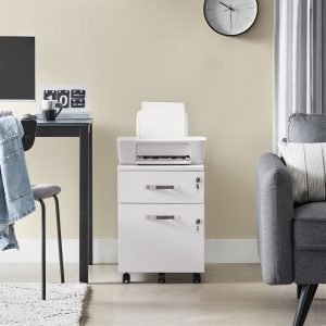 Archivador con cerradura y 2 cajones, blanco