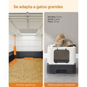 Arenero para gatos grandes con bandeja extraíble, beige y negro