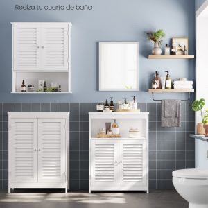 Resistente al Moho y Fácil de Limpiar: Fabricado en MDF clase E1 y revestido con un acabado blanco, este armario de baño es resistente a la humedad y al moho. Su superficie es fácil de limpiar, facilitando el mantenimiento en tu baño.