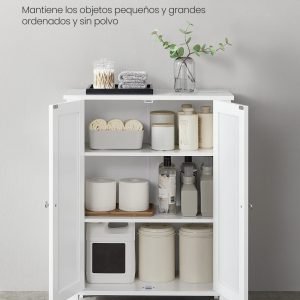 Estilo Rústico y Versatilidad: El armario blanco en estilo rústico combina con los pomos de metal, adaptándose a cualquier espacio y función. Puede utilizarse como armario de baño, armario zapatero en el pasillo, en la cocina o como armario botiquín, ofreciendo una funcionalidad perfecta.
