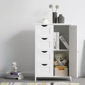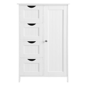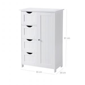 Armario baño estrecho, 4 cajones y puerta, blanco