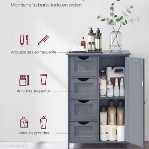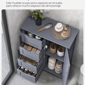 Este armario de baño combina funcionalidad y estilo para maximizar el espacio de almacenamiento en áreas compactas. Ofrece una solución ordenada y eficiente para mantener organizados los artículos de uso frecuente, objetos pequeños, y otros de diferentes tamaños. Su diseño compacto lo hace ideal para espacios limitados, sin sacrificar su capacidad de almacenamiento.