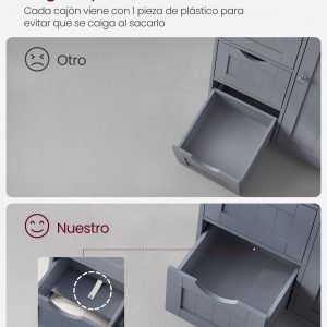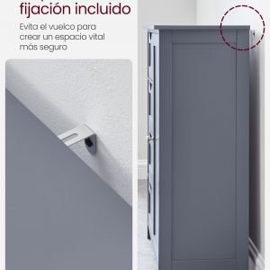 Construcción Robusta: Fabricado con paneles de MDF de alta calidad, garantiza estabilidad y durabilidad. Además, incluye una protección antivuelco para asegurar el mueble contra inclinaciones o caídas.