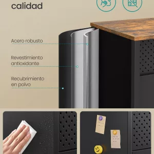 Versátil y Elegante: Con su diseño sobrio, este armario se integra fácilmente en cualquier ambiente. Perfecto para la cocina, sala de estar u oficina, se adapta a tus necesidades de almacenamiento con estilo.