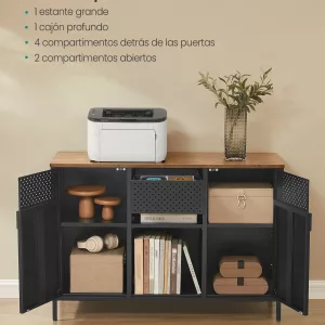 Este armario versátil, de diseño clásico y elegante, es perfecto para cualquier espacio en tu hogar. Con su amplia capacidad de almacenamiento y materiales duraderos, se adapta a tus necesidades como aparador en la cocina, mueble de TV en la sala de estar o armario de almacenamiento en la oficina.