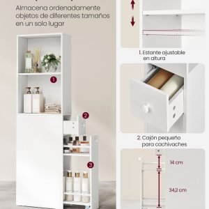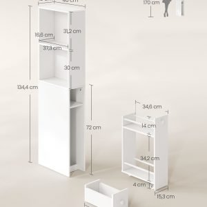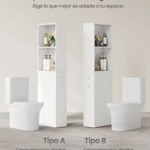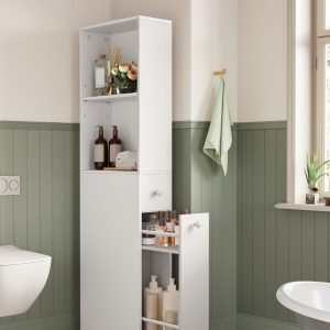 Armario de baño alto y delgado blanco, estilo moderno