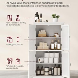 Este armario de baño es ideal para aquellos que buscan una solución de almacenamiento elegante y segura. Su diseño inteligente y su capacidad de adaptación lo hacen perfecto para mantener tu baño organizado y libre de desorden, mientras que su estilo contemporáneo mejora la estética de tu espacio.