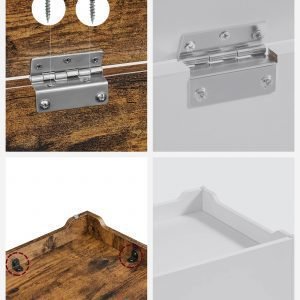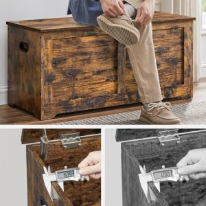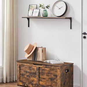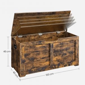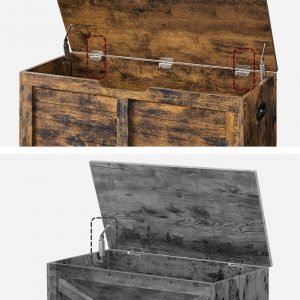 Banco de almacenaje estilo rústico con bisagras de seguridad, marrón rústico