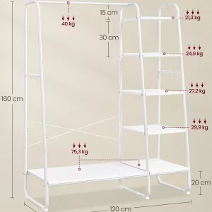Máx. capacidad de carga estática de cada estante de arriba a abajo: 21,3 kg, 24,9 kg, 27,2 kg, 29,9 kg, 75,3 kg