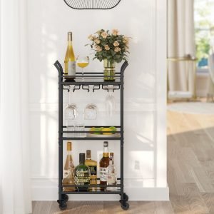 Este carro de bebidas es perfecto para quienes buscan una solución de almacenamiento y exhibición elegante y funcional. Su diseño sofisticado lo convierte en una pieza destacada en cualquier reunión o evento, aportando un toque de estilo y practicidad a tu hogar.