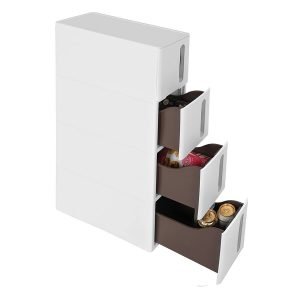 4 Cajones Extraíbles: Equipado con 4 cajones profundos, ofrece una capacidad de almacenamiento superior a 28L. Los cajones de plástico PP son resistentes al óxido, lo que lo hace perfecto incluso para ambientes húmedos como el baño.