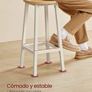 El tablero aglomerado de alta calidad, la robusta estructura metálica y el reposapiés dan gran estabilidad. Cada taburete soporta hasta 100 kg; las almohadillas para los pies hacen que el taburete sea antideslizante y seguro para sentarse.