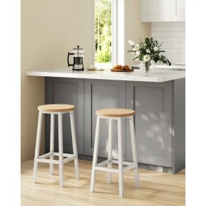 Con un diseño compacto de Ø 32 x 65 cm cada uno, los dos taburetes pueden deslizarse fácilmente bajo la mayoría de las mesas de bar para ahorrar espacio cuando no se utilizan.