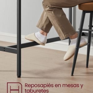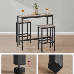 Este conjunto no solo se destaca por su estilo, sino también por su funcionalidad. Equipado con una barra de soporte, dispositivo de fijación y patas ajustables, asegura una estabilidad incomparable, ya sea que se utilice para desayunar, tomar algo por la noche, o incluso trabajar desde casa. Su diseño versátil se adapta perfectamente a la cocina, sala de estar, o dormitorio.