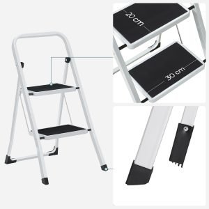 Escalera Plegable de 2 Peldaños con Gancho de Seguridad y Peldaños Antideslizantes