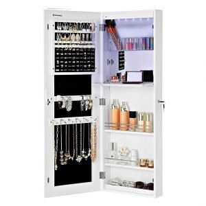 Todo en Uno: Imagínate tener un joyero, un espejo y un armario juntos. Este mueble te ofrece eso y más. Es perfecto para mantener tus joyas organizadas mientras te preparas frente al espejo.