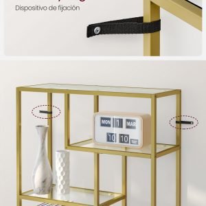 Fabricada con vidrio templado y acero, esta estantería no solo representa durabilidad, sino también robustez. Puede soportar una carga total de hasta 40 kg, asegurando una larga vida útil y acompañándote en los buenos momentos.