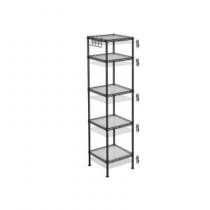 Esta estantería de baño es la solución ideal para quienes buscan más espacio de almacenamiento en baños pequeños. Con unas dimensiones de solo 30 x 30 cm, esta unidad de 5 estantes ofrece un amplio lugar para organizar toallas, lociones y todos los esenciales de tu rutina matutina, sin ocupar mucho espacio.