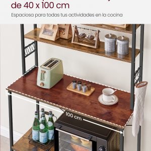 Esta estantería de cocina no solo es una solución de almacenamiento eficiente y elegante, sino también una adición duradera y segura para tu hogar. Con su amplia capacidad de almacenamiento y diseño versátil, es ideal para mantener tu cocina organizada y aprovechar al máximo el espacio disponible.