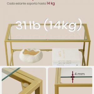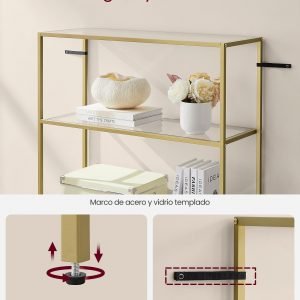 Esta elegante estantería de almacenamiento ofrece un diseño minimalista y transparente que realza la belleza de tus plantas, libros y colecciones. Con 6 niveles y un marco dorado, maximiza el espacio de almacenamiento vertical sin ocupar mucho espacio en el suelo.