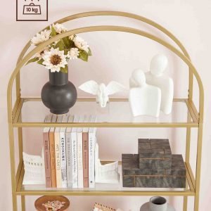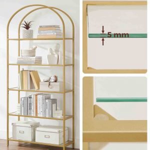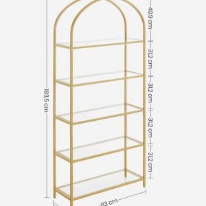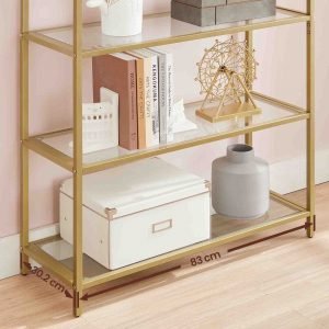 Estantería de 5 niveles de acero dorado y transparente