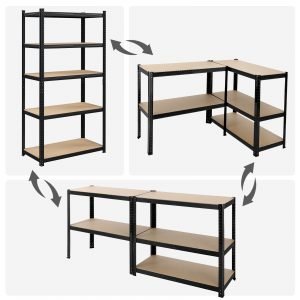 Las Razones Principales por las que la Estantería Es la Única: Un marco de acero reforzado y estanterías de madera resistente ofrecen un apoyo firme. Los travesaños de cada nivel mejoran la estabilidad. El marco es resistente al óxido. Cada nivel de este estante puede soportar hasta 175 kg. Cada estante es ajustable en altura; además, el estante puede ser dividido en 2 unidades. Se incluye un dispositivo de fijación para asegurar un uso seguro. También es ideal para el cobertizo, el sótano, el lavadero, el sótano y el taller.