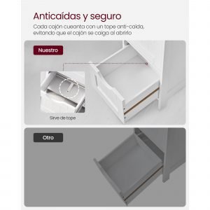 Este armario de baño con 4 cajones ofrece mucho espacio para tus cosas de baño, tales como toallas, rollos de papel higiénico y perfume, etc.; sus dimensiones de 30 x 30 x 82 cm, que le permiten ocupar poco espacio.