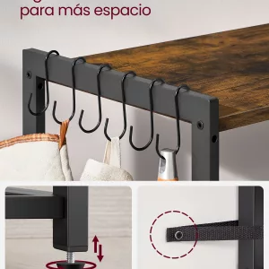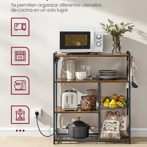 Simplifica tus preparaciones culinarias y organiza todos tus utensilios y electrodomésticos de cocina con esta Estantería de Cocina Multifuncional de Varios Niveles. Su diseño inteligente y su robusta estructura brindan una solución eficiente y duradera para mantener todo al alcance de tu mano, mientras añades un toque de estilo rústico y moderno a tu cocina.
