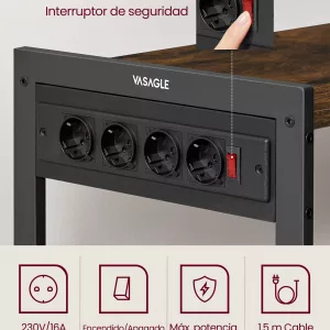 Estación de Carga Extraíble: Diseñada pensando en la conveniencia, esta estantería incluye una estación de carga con 4 tomas de corriente que se puede montar en el lado izquierdo o derecho, según tus necesidades. Ideal para tener a mano pequeños electrodomésticos como licuadoras, tostadoras o cafeteras, mientras mantienes los cables organizados y fuera del camino.