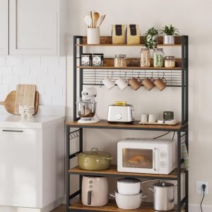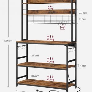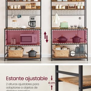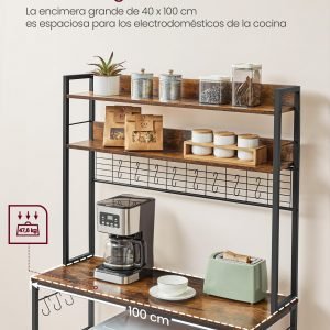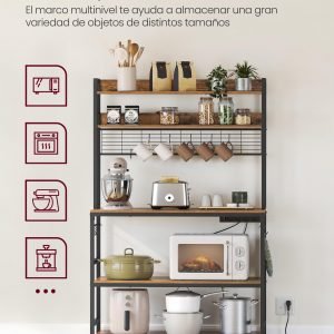 Estantería de cocina con soporte para microondas y toma de corriente integrada