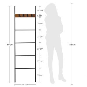Esta pieza única no es solo un toallero, sino también una solución decorativa y práctica para tu hogar. Con un diseño moderno que combina un marco negro elegante con barras en color marrón rústico, esta escalera decorativa aporta un toque chic y original a cualquier espacio. Ideal para colgar mantas en el salón, toallas en el baño, o incluso como elemento decorativo en sí mismo.