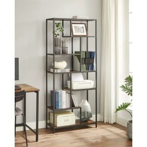 Estantería decorativa de 6 niveles en marrón rústico y negro