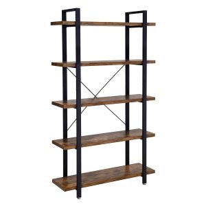 Estantería para salón, 5 estantes, almacenamiento estable, marrón