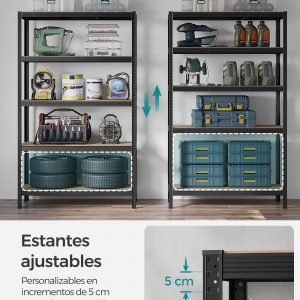Estantería pesada 5 niveles acero para garaje negro