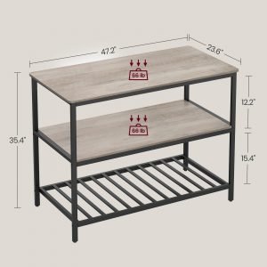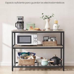 - Almacenamiento Inteligente: Equipada con 3 niveles de almacenamiento, esta isla de cocina te permite organizar desde teteras y electrodomésticos hasta cajas y utensilios, manteniendo todo accesible y ordenado.