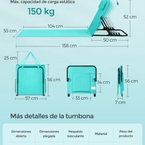 Máx. capacidad de carga estática de cada tumbona: 150 kg