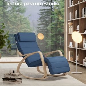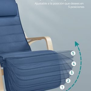 Mecedora acolchada ajustable con reposapiés, azul