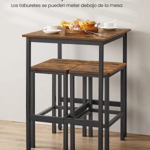 Diseño Ahorrador de Espacio: Con medidas de 60 x 60 x 90 cm para la mesa y 30 x 40 x 65 cm para cada taburete, este conjunto es ideal para espacios reducidos. Además, puedes guardar los taburetes debajo de la mesa para maximizar el espacio cuando no los uses.