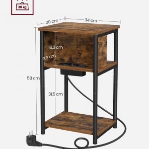 Mesa auxiliar con 2 enchufes y 2 puertos usb – 30x34x58 cm