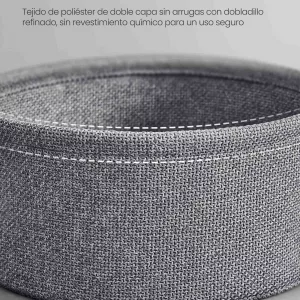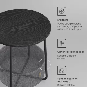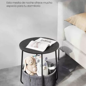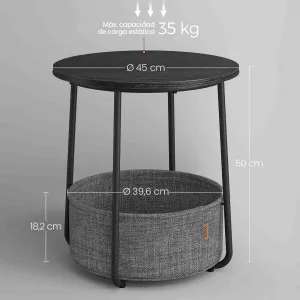Mesa Auxiliar Redonda con Cesta de Tela Negro Ébano y Gris Pizarra