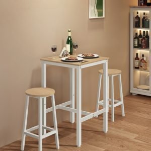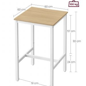 Mesa bar cuadrada alta, estilo industrial, roble