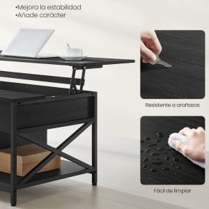 Esta mesa de centro no es solo un mueble, es una solución innovadora para tu hogar. Gracias a su parte superior elevable, podrás trabajar desde casa, navegar por Internet, comer o realizar manualidades cómodamente desde tu sofá.