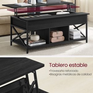 Equipada con bisagras metálicas de alta calidad y un travesaño reforzado, el tablero de esta mesa de centro se eleva y desciende suavemente, manteniéndose estable sin tambalearse.