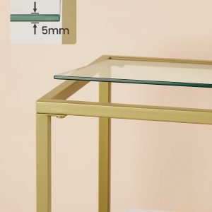 Lujoso y Práctico: El marco dorado y los estantes de vidrio templado ofrecen un espacio elegante para tus libros, baratijas y más.
