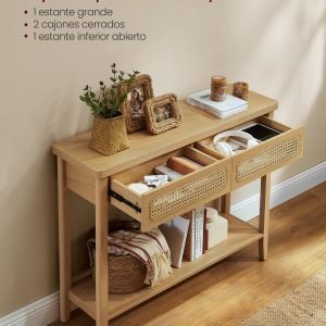 Versatilidad: Ideal para cualquier habitación, esta consola se adapta perfectamente a tu entrada, sala de estar, dormitorio, y más, ofreciendo un espacio adicional para decorar y organizar.