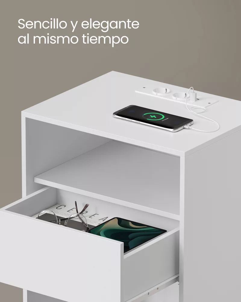 Mesita de noche blanco mate montaje ultrarrápido sin herramientas